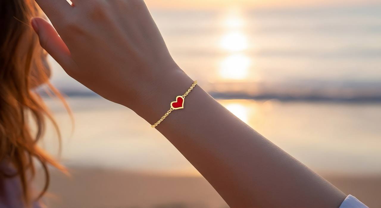 انسيال رقيق يكمل اناقتك عيار 18 قيراط تصميم قلب احمر