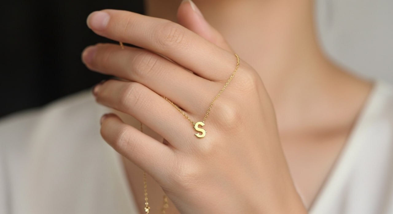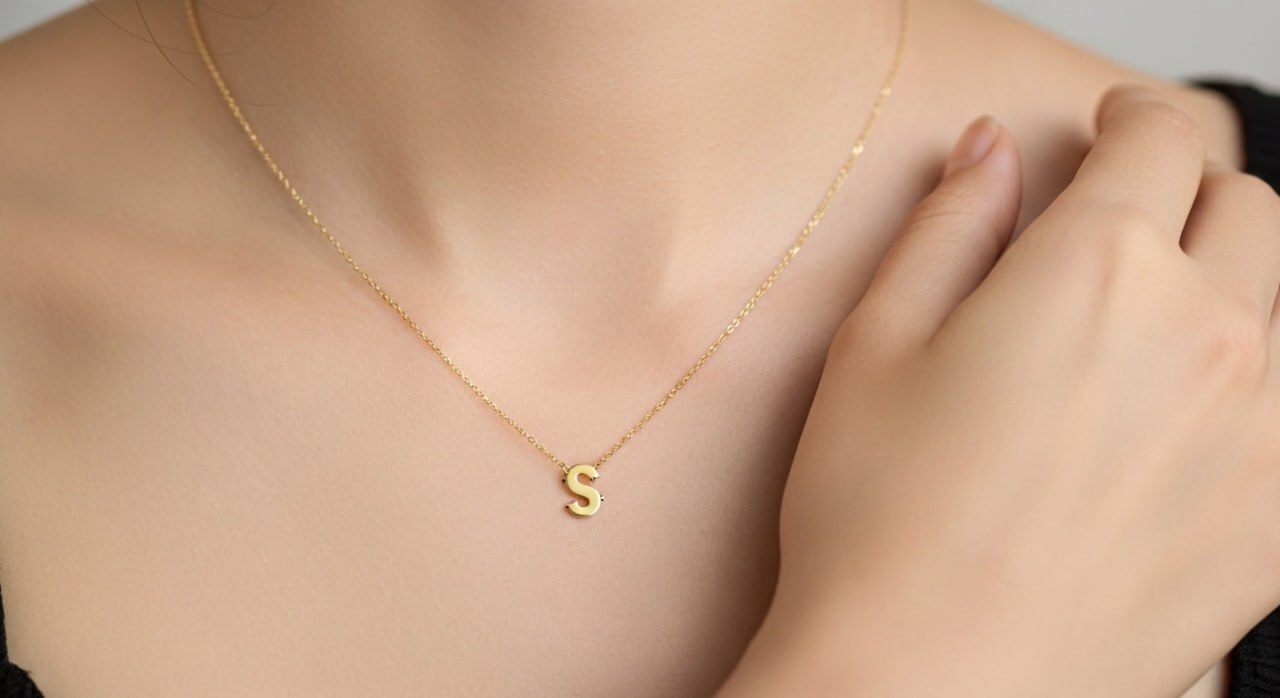 كولية ذهب عيار 18 قيراط حرف s مجسم