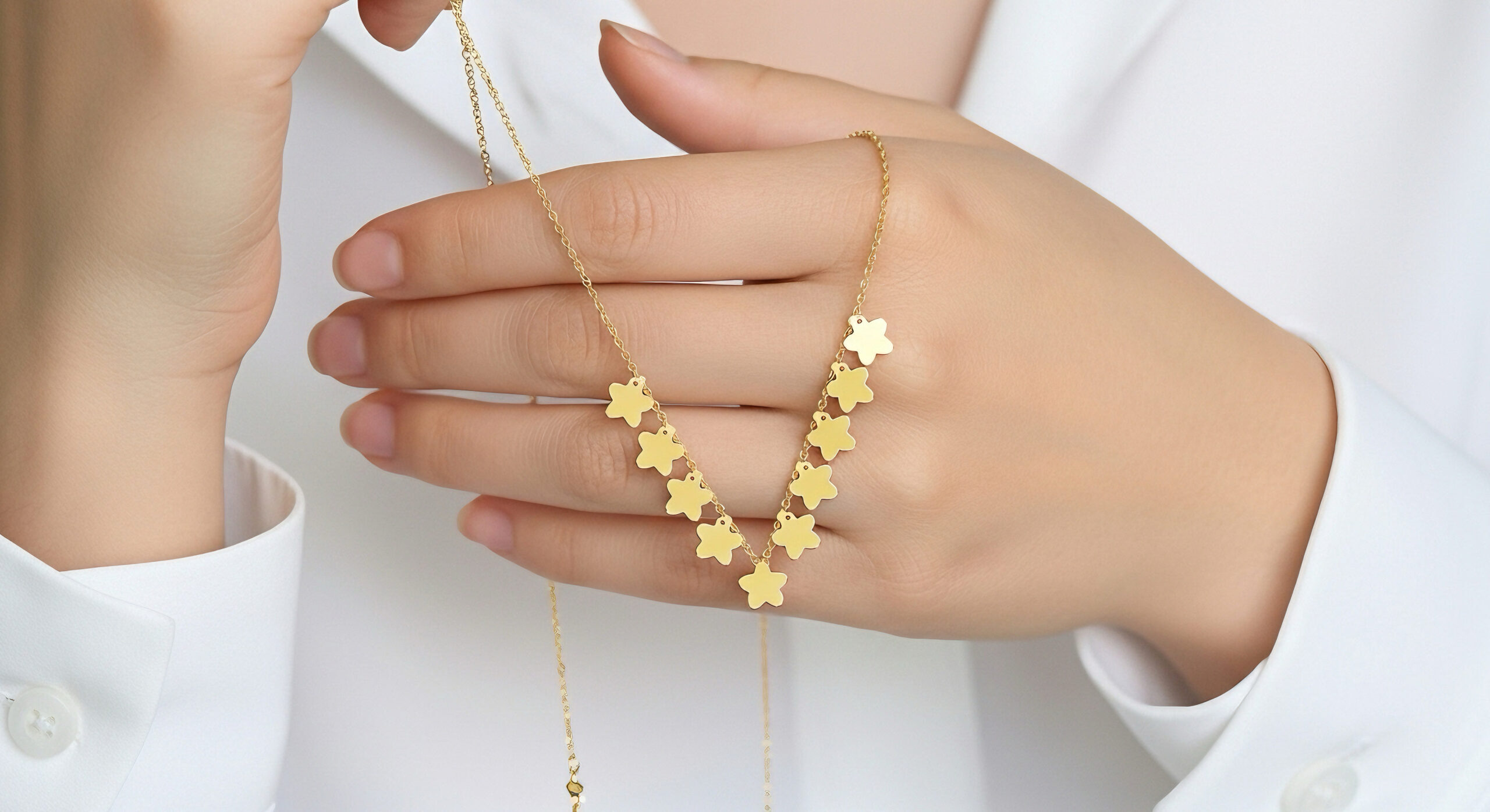 كولية ذهب فرفشة نجوم عيار 18 قيراط بريق أصلي لأناقة لا تزول